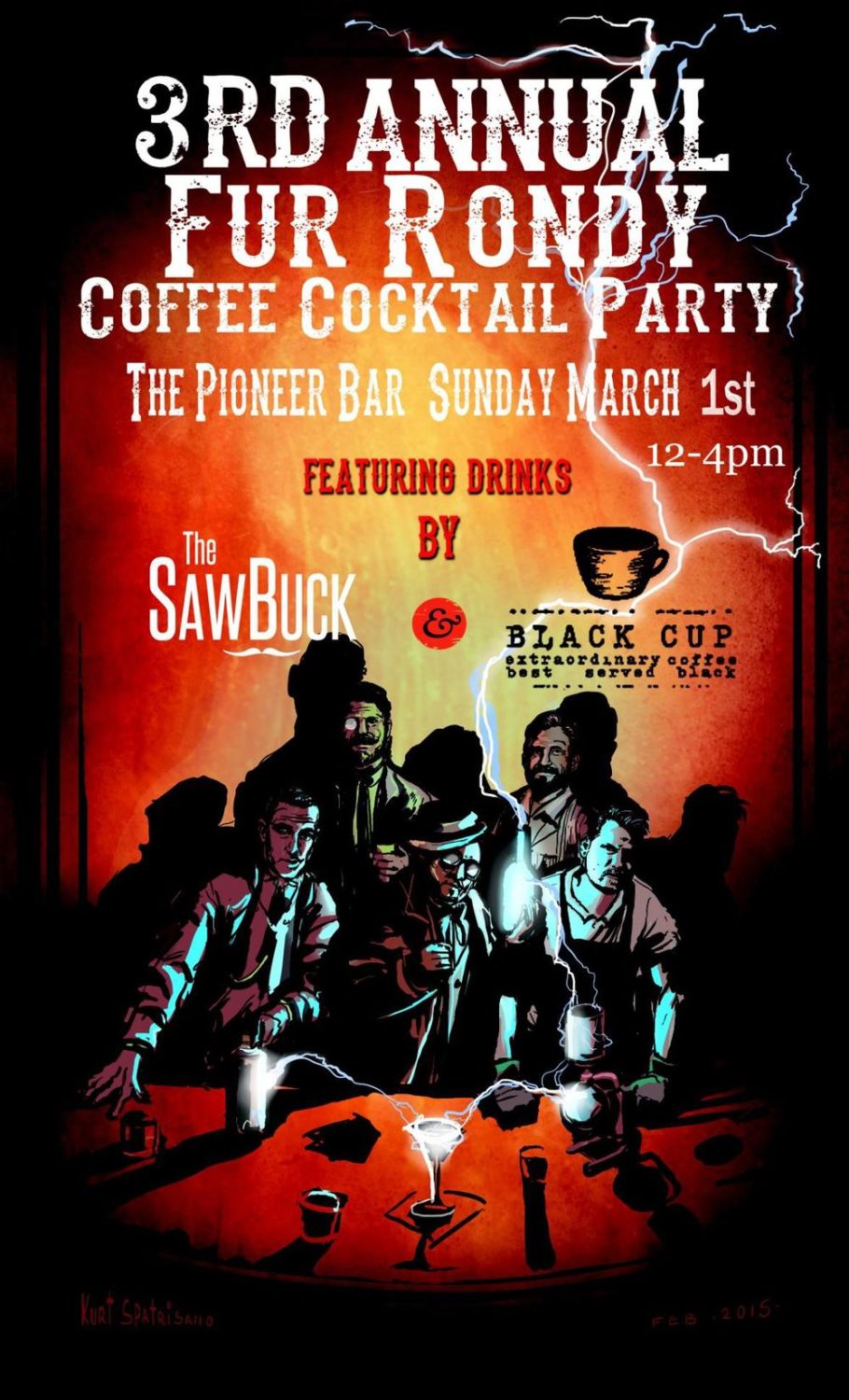 I was one of the early arrivers and was met by Doug Griffin, the coffee roaster for The Black Cup. He remembered me from that Beer and Bacon Festival (great memory!). Doug is very passionate about straight black coffee and he shared with me that he wanted to partner up with The SawBuck team to bring coffee-infused and inspired drinks to this Fur Rondy event. He definitely had my attention.